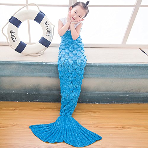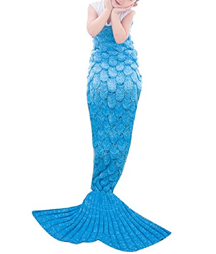 Title : Moxeay Knitted Fish Scales Mermaid Tail Blanket for Kids Sleeping Blanket (Lake Blue for Kids)