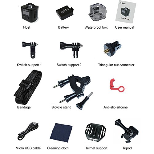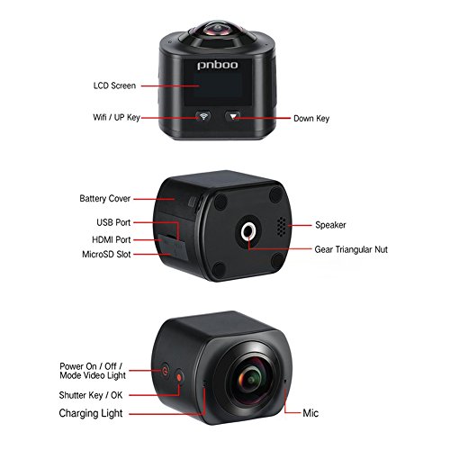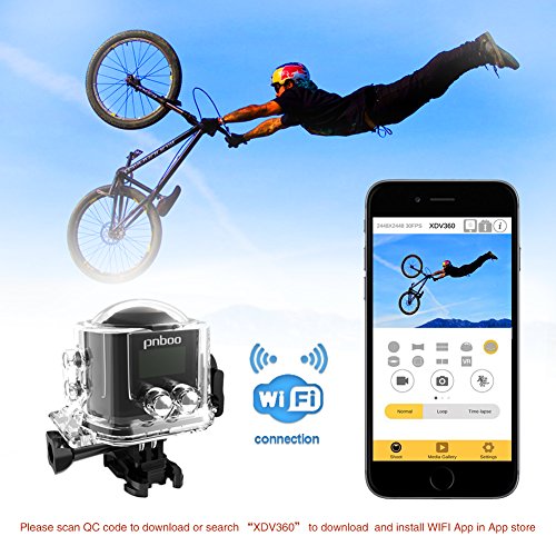 PNBOO PA-10 360° Panoramic Sport Action Camera 3D VR 16MP 4K HD 30fps Waterproof APP WIFI with Rechargeable Battery, Sony IMX179 Sensor(Black)
