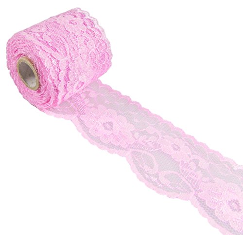 HipGirl 20 Yards Floral Pattern Fabric Lace Ribbon by the Roll for Wedding Invitation, Cards, Decorating, Sewing, Hair Bow Making, Gift Package Wrapping, Floral Designing & Crafts. 2 Inch Wide, Pink
