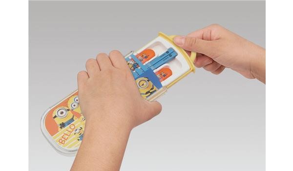 | 指で引き出すスライド式ケースに入ったカトラリーセットです。分解可能で洗いやすいので、いつでも清潔にお使い頂けます。お箸には名前を入れられるスペース付きです。 |