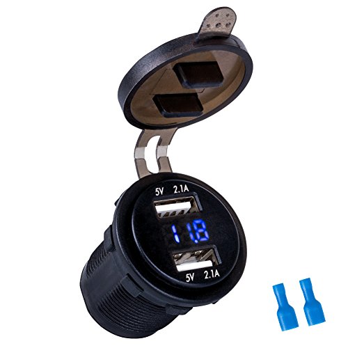 -. Title : FieryRed(AKA LITE-WAY) 4.2A Dual Port USB Charger with 12-24V Voltmeter Blue LED Digital Display Universal for Car Boat Motorcycle, 2 Years Warranty