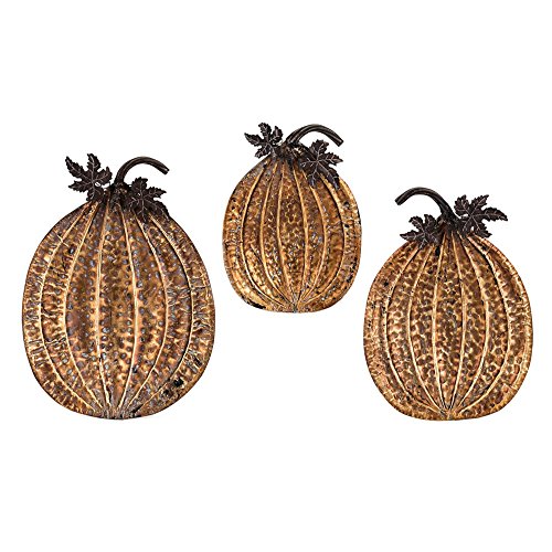 Benzara Harvest Metal Gold Leaf Pumpkin Trays-Set of 3