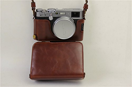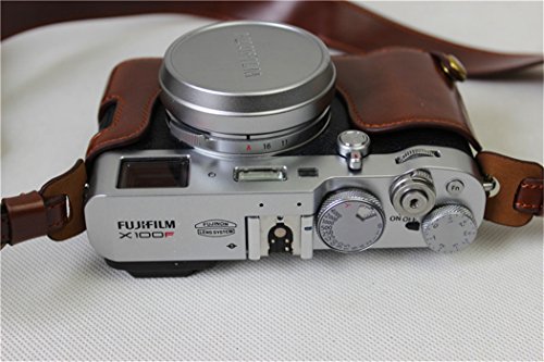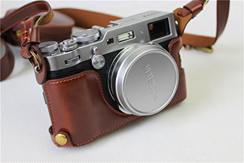BolinUS Handmade PU Leather FullBody Camera Case Bag Cover for Fujifilm X100F Bottom Opening Version + Neck Strap + Mini Storage Bag -Coffee