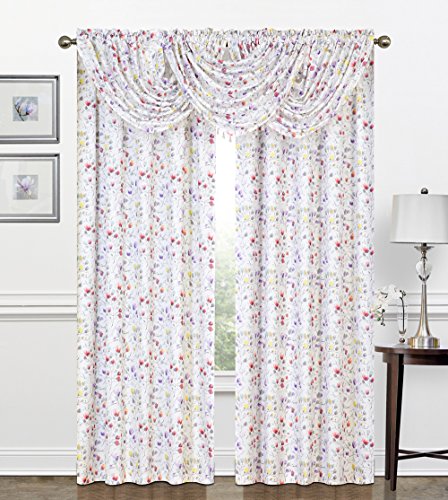 Bring a new look to any room with this updated Multi colored botanical print on an ivory colored textured Crepe background. Gently filtures light. Rod pocket top. Available in window panels and matching waterfall valances. Easy care machine wash and dry.
