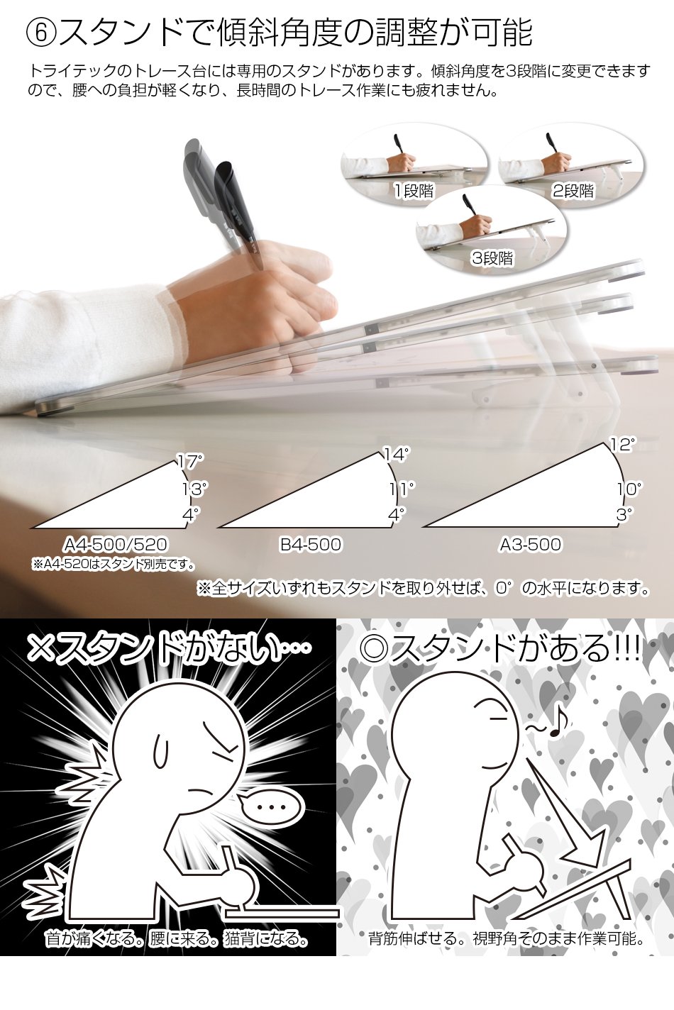 You can draw with a comfortable posture even for a long time tracing work.