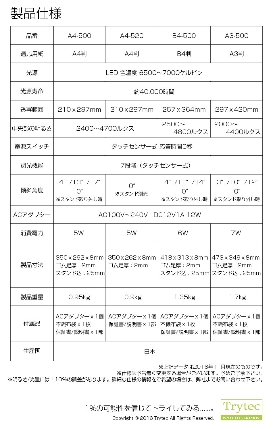TRY TEC CORPORATION is a company located in Kyoto, Japan, which processes, manufactures and sells surface emission (trace base) panels and resin nameplates of LEDs.
