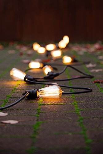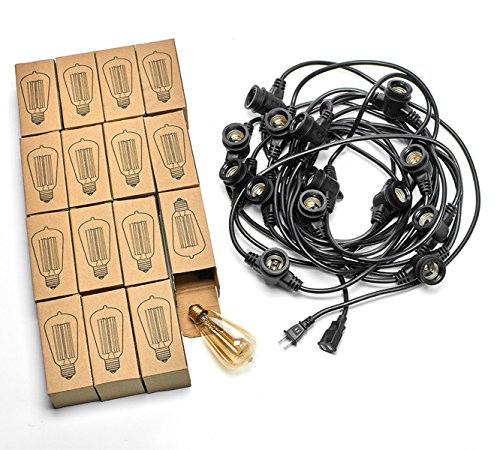 Radiance Commercial Grade Weatherproof String Lights, 52 ft, Black Wire, Vintage Edison Filament Bulb