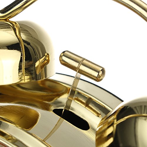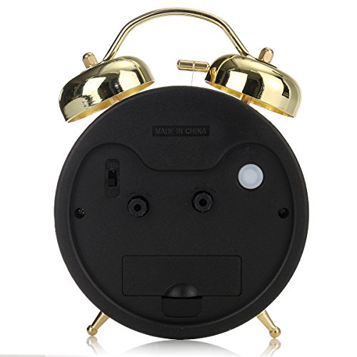 Studio : Jeteven Publisher : Jeteven Binding : Kitchen Product Description Description: 1. 100 % brand new and High quality 2. Nightlight function, you could see the clock at night clearly. 3. Metal twin bell alarm clock, super loud, very suitable for people who snooze, mild loss hearing even deaf. 4. Almost mute scanning movement, just a little sound in the night ,but will not disturb your rest. Features: 1. Size: 11.6*5.5*17CM 2. Alarm Clock size: 4 inchs 3. Color: Bronze,Copper,Golden 4. Powered by: 1 x AA batteries (not included) Package Included: 1 x Alarm Clock 0