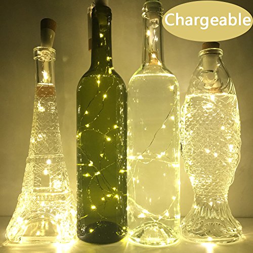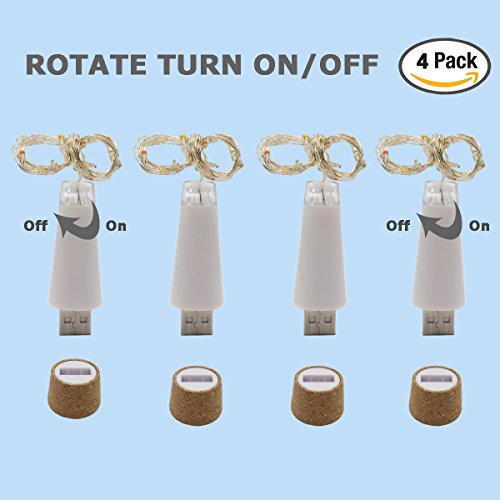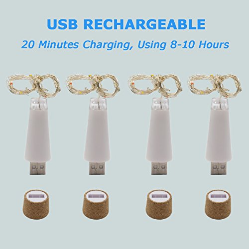 Wine Cork Lights, NeoJoy Rechargeable Bottle Fairy String Lights with 15 LED for DIY Artificial Parties Centerpiece Bedroom Decoration Gift (Warm White, 4PCS)