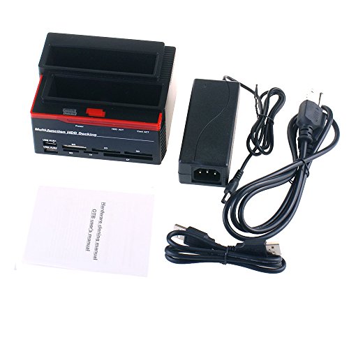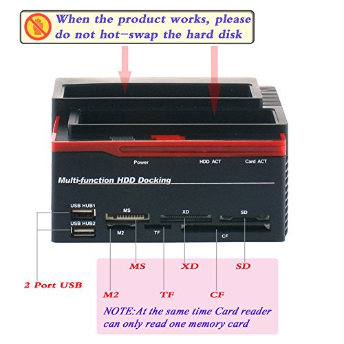 Tccmebius TCC-892U2IS USB 2.0 to SATA IDE Dual Slots Hard Drive Docking Station with Card Reader and 2 Port USB 2.0 Hub, For 2.5 3.5 Inch HDD IDE SSD SATA I/ II/ III (No Support the WD IED Hard Drive)