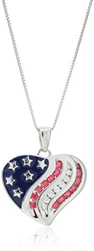 Platinum Plated Sterling Silver Swarovski Zirconia American Flag Heart Pendant Necklace, 18"