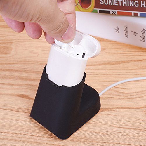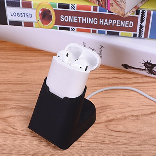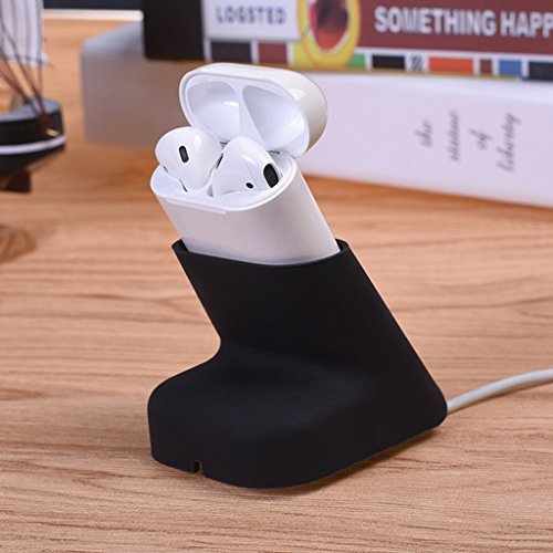 -. Feature : Compatible with: Apple Airpods Wireless Bluetooth Headsets. / Protable and weightlight, easy to carry and use whenever you need. / Soft Silicone rubber material,not easily infected with dirt stains,easy to clean. / Earphones desktop charging case dock stand charger station cable winder holder. / Built-In thread winder,provides a convenient and safe wire management programs.