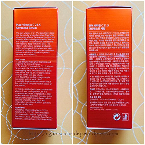 -. Feature : Includes Pure Vitamin-C 21.5%. VITAMIN C #1 bEST SELLING Serum In Korea and Other Asian countries.+ 1 C20 CREAM / Ranked the best selling item in Singapore No.1 commerce. (2012) .Help Revitalizing, Remove dead skin cells / Ranked the best selling item in Japan e-commerce. (2013) .Whitening, Pore Tightening / Recovering trouble scars, Skin Whitening, Younger looking, good for sensitive skin / Removing black head,