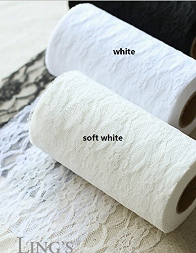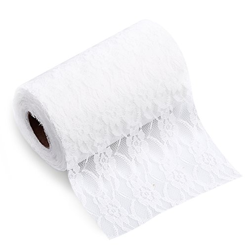 Ling's moment White Lace Fabric Roll 6 Inch x 24 Yards Floral Lace Ribbon for Burlap Table Runner Boho Vintage Wedding Decorations Bridal Shower Baby Shower Party Decor Craft