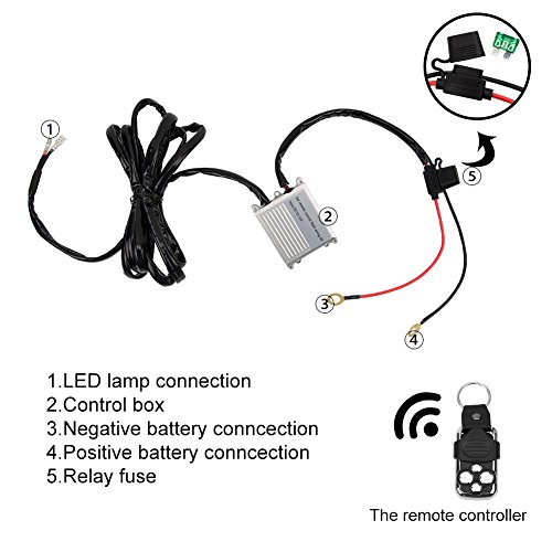 Liteway LED Light Bar Wiring Harness Wireless Strobe Wiring Kit ON-OFF-Strobe Remote Control Switch for Driving Light Fog Light Work Light(1Lead 12ft), 2 Years Warranty