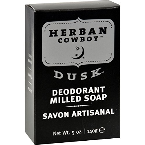 Dusk deodorant soap, vegan, vegetable base, with deep cleaning pumice, skin conditioning seaweed and natural masculine scent, long lasting bar.