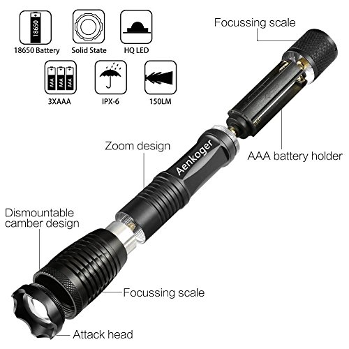 Ultra bright and Zoomable: 5 modes adjustable(High, Medium, Low, Strobe, SOS), Zoomable function
