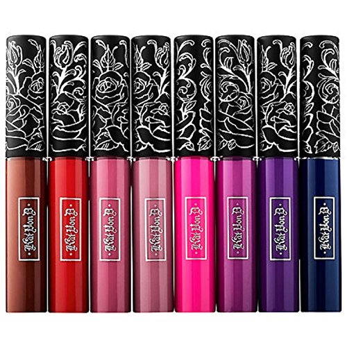 Studio : KAT VON D Publisher : KAT VON D Product Description Manufacturer: The eight high-pigment shades give you the perfect spectrum of statement pops and everyday neutrals, featuring an exclusive preview of two new shades-Plath, a deep russet red, and Roxy, a bright grape color. Mix and match to create one-of-a-kind lip looks, or wear them on their own for a pure matte lip look that won't wear off. This set contains: - 8 x 0.1 oz/ 3 mL Mini Everlasting Liquid Lipsticks in Plath (deep russet red), Santa Sangre (poison apple), Mother (dusty mauve pink), Lovesick (mauve nude), Backstage Bambi (vivid hot pink), L.U.V. (rich violet), New! Roxy (bright grape), Echo (satin navy blue) 0