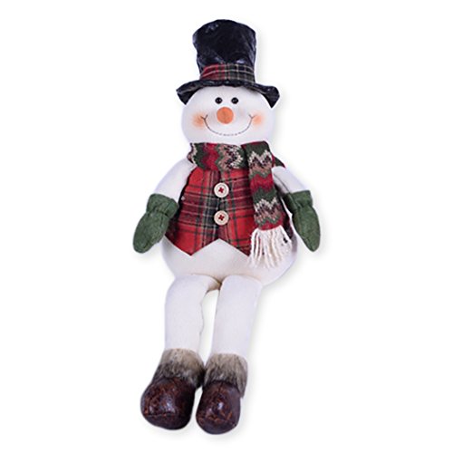 Large Snowman Plaid Shirt Fur Trim 24 x 8 Plush Christmas Shelf Sitter Figurine