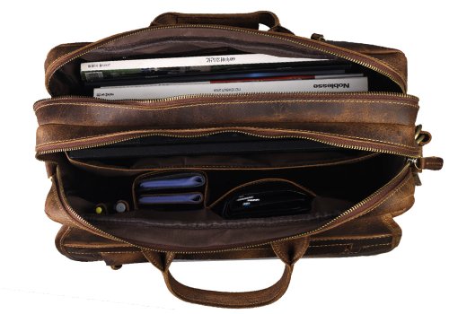 -. Feature : 100% brand new & High quality. Kattee is an US registered trademark, unauthorized sale without permission, we will investigated for legal responsibility. Please pay attention to avoid purchasing counterfeits from other seller / Made by Top Crazy-Horse Cow Leather, high quality and durable / Two main sections with zipper closure / Inside zip pocket, cross pocket, wallet holder, cell phone pocket & 2 pen pockets; Backside zipper pocket / Fit up to 16" Laptop, nice briefcase