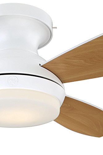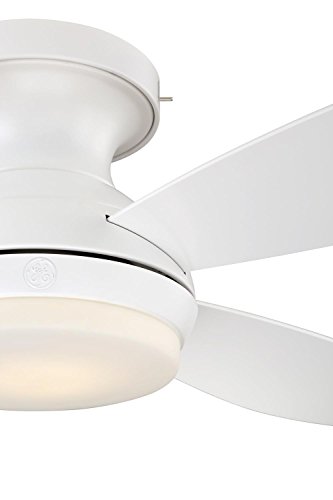 The GE Kinsey 44 in. Hugger Ceiling Fan has a modern design that is ideal for lower ceilings or smaller spaces. The fan is available in brushed nickel, bronze, and white finishes, and includes a 3-speed remote control (with optional wall mount) and an integrated and dimmable 18W LED light kit. The GE Kinsey Hugger Fan features the new and technologically advanced SkyPlugTM Mounting System to provide safe, quick and easy installation. This innovative Plug & Play feature eliminates complicated wiring, and allows the fan to be easily taken down, or switched out with a large variety of ceiling fans within seconds! The fan is built with high quality GE specifications and includes a limited lifetime motor warranty. The reversible motor offers superior air movement for year-round comfort and savings. To assist with installation, please refer to the Installation Video.Feature