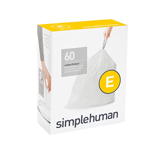 simplehuman Code E Custom Fit Liners, Drawstring Trash Bags, 20 Liter / 5.2 Gallon, 3 Refill Packs (60 Count)