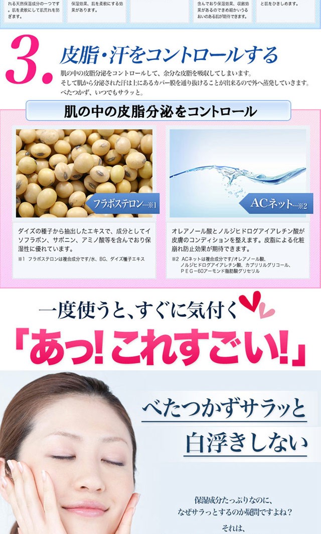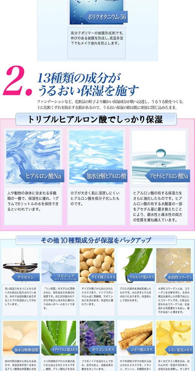 水、BG、ポリクオタニウム-56、コメヌカ油、グリセリン、グルコシルセラミド、ヒアルロン酸Na、PEG-60アーモンド脂肪酸グリセリル、アセチルヒアルロ ン酸Na、加水分 解ヒアルロン酸、カプリリルグリコール、ポリクオタニウム-51、 カルボマー、フユボダイジュ花エキス、ローマカミツレ花エキス、ヤグルマギク花 エキス、セイヨウオトギリソウ花/葉/茎エキス、トウキンセンカ花エキス、カミツ レ花エキス、ダマスクバラ花水、イザヨイバラエキス、ノイバラ果実エキス、カニナバラ果実 エキス、ダイズ種子エキス、アロエフェロックス葉エキス、水溶性コラーゲン、ユズ 果実エキス、ノルジヒドログアイアレチン酸、オレアノール酸、キュウリ果実エキス 、アルニカ花エキス、セイヨウキズタ葉/茎エキス、ゼニアオイ花エキス、セイヨウ ニワトコ花エキス、パリエタリアエキス、窒素、ヒメフウロエキス、オレイン酸ポリグ リセリル-10、エタノール、フェノキシエタノール |
