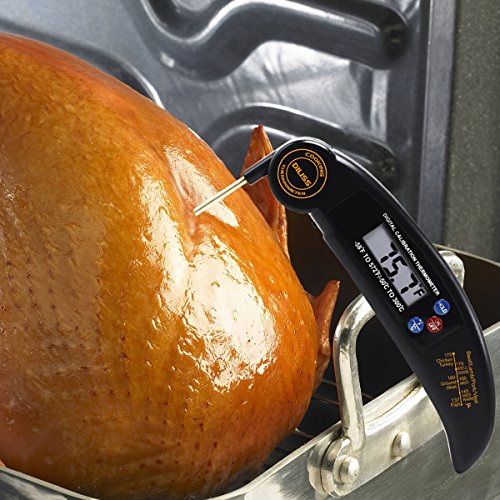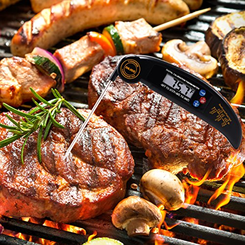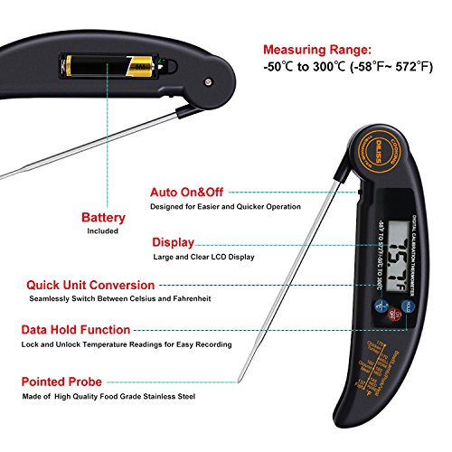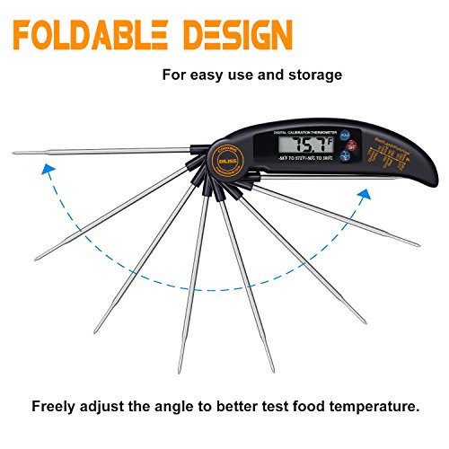 DILISS Instant Read Meat Thermometer, Super Fast Accurate Cooking Thermometer Electronic Kitchen Thermometer with Digital LCD, Collapsible Internal Probe for Food, Candy, Milk, Coffee, Tea, BBQ Grill