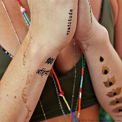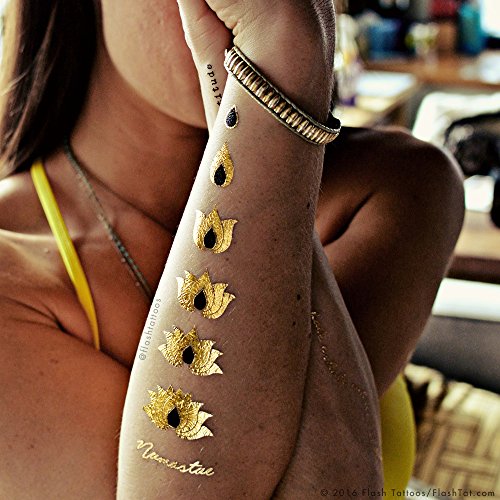 Flash Tattoos YOGALUST Authentic Metallic Temporary Tattoos 3 Sheet Pack (Black/gold/silver) Includes over 29 Premium Waterproof Tattoos