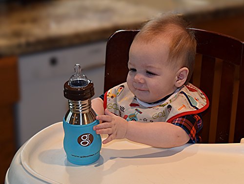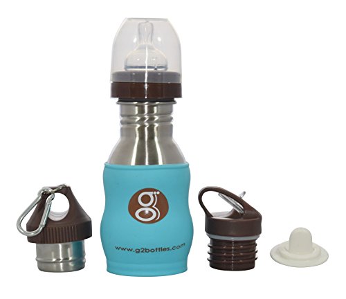 -. Feature : THE ORIGINAL STAINLESS STEEL BOTTLE FOR BABIES - This 12oz/350 ml bottle is made from 100% recyclable, high-quality, food-grade stainless steel so it doesn't need a synthetic lining like aluminum bottles. It's completely BPA-free and won't leach chemicals, toxins, or funky flavors into your baby's beverages. The new G2 WAVE bottle has fluid measurements inside to make measuring a breeze and is free from coatings, so no paint chipping onto your child's hands. / IMPROVED DESIGN COMES WITH MORE ACCESSORIES - System includes silicone sleeve, silicone nipple for babies (medium flow), silicone soft sippy spout for toddlers with flow regulator, universal BPA free wide-mouth adapter for nipples and soft sippy spouts, BPA-free nipple adapter dust cap, BPA free flip top no-leak sports lid you can use with or without the included straw for ages 2+, and a stainless steel looped lid with carabineer hook / EASY TO USE, COMFORTABLE TO HOLD, AND ACCIDENT RESISTANT - we have cleverly designed a thick silicone sleeve to keep hands from getting cold, to eliminate surface condensation and protect the bottle if it hits the floor. The wave of the bottle is designed for small hands too, making it easy to hold so that everyone in the house can safely use it! Its slim design fits most bottle & cup holders making it a healthy option for babies and young children on the go / THE NEW G2 WAVE BOTTLE WILL GROW WITH YOUR CHILD - We include the nipple and soft sippy nipple, the universal nipple adapter (wide mouth), clear BPA-free lid, new no-leak flip top lid you can use with or without the included straw, and a stainless steel looped lid with carabineer hook to take your child through all stages of development / WE CARE ABOUT VERSATILITY AS MUCH AS YOU DO - At Goo-Goo Baby know that parents and children enjoy choices and that is why we designed our nipple & sippy spout adapter to work with our Goo-Goo Baby brand of accessories, as well as the following brands: Avent Nipples, Toddler Spout & Sport Spout, Dr. Brown's Wide Neck Nipples, BornFree Wide Neck Nipples, Soft Spout & Hard Spout, Thinkbaby Nipples & Soft Spout, Gerber Wide Neck Nipples, and Nuk Wide Neck Nipples