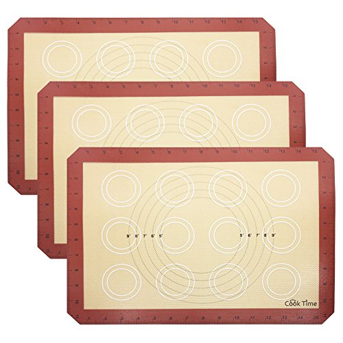 Silicone Baking Mat with Measurements (set of 3) - Half Sheet Baking Sheet Liner Non Stick Cookie Mat(Thick/Large/Nonstick) - Macaron/Cake/Bread Making - Best for Microwave Toaster Oven Tray/pan
