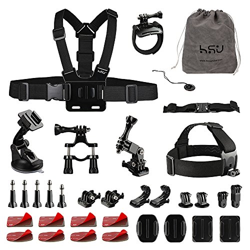 HSU Outdoor Sports Camera Accessory Kit for GoPro Hero 5/4/3+/3/2/1 Black Silver SJ4000 SJ5000 SJ6000, Accessories for Action Cameras Xiaomi Yi Lightdow AKASO DBPOWER and More.(20 Items) (34items)