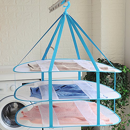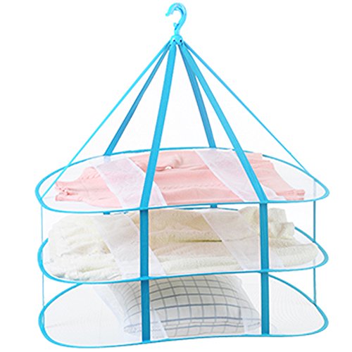 Drying Rack Nets Folding Mesh Hanging Clothes Basket Nets 3 Layers for Underwears Women Lingerie Woollen Sweater Baby Garments Doll Pillow Plush Toys (77cmX61cmX78cm)