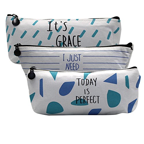 KisSealed Pen Pencil Case Canvas Set of 3,Simple Lovely Cute Zipper Coin Pouch Cosmetic Makeup Bag