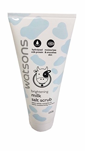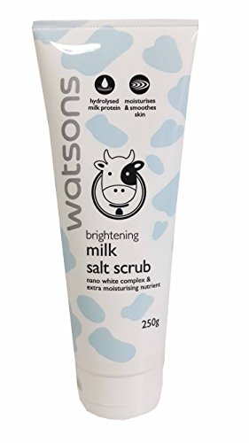 Watsons Brightening Milk Salt Scrub. Nano white complex & extra moisturising nutrient. Hydrolysed milk protein, moisturises & smoothes skin. (250 g/ pack)