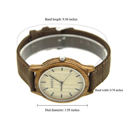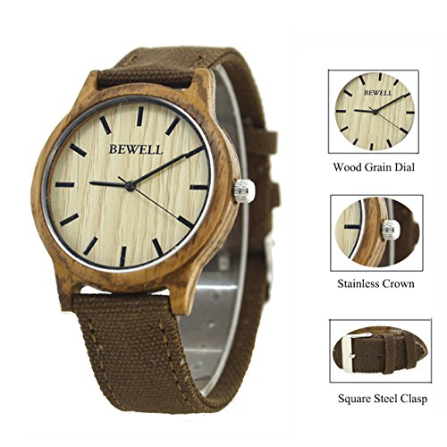 -. Title : Bewell Canvas Strap Zebra Wood Watch Light Weight Ultrathin Wristwatch Quartz W134A