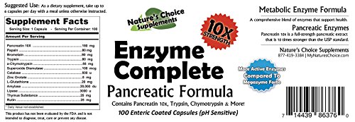 About Enzyme Complete... Enzyme Complete is the most potent metabolic enzyme formula available. Each capsule contains over 13 different enzymes, including Pancreatin 10X, a-Chymotrypsin, Bromelain, Trypsin, Amylase, Rutin just to name a few, each having its own purpose.