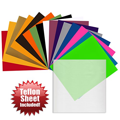 Angel Crafts 12" x 10" SISER Easyweed Heat Transfer Vinyl Sheets (16 PACK) w/ Teflon Sheet for T Shirts, Hats, Clothing - Best Iron On HTV Vinyl for Silhouette Cameo, Cricut or Heat Press Machine Tool