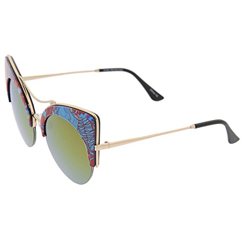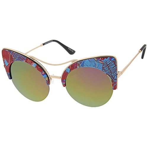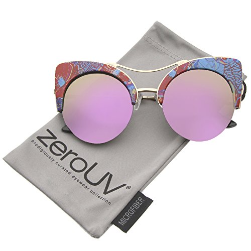 zeroUV - Women's Flat Lens Floral Print Semi-Rimless Round Cat Eye Sunglasses 52mm