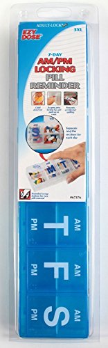 ReleaseDate : 2015-10-07 Studio : Apothecary Products, Inc. Publisher : Apothecary Products, Inc. Binding : Health and Beauty Product Description The unique design features a locking device that prevents pills from spilling inside your purse, briefcase or suitcase. Each lid features a large imprinted letter designating the day of the week as well as braille markings. 0