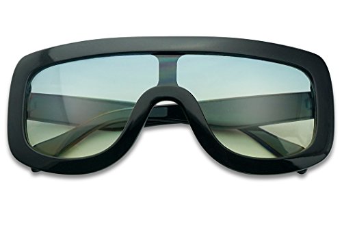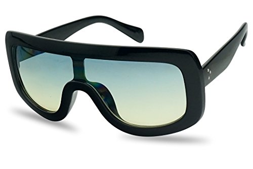 Thick Bold Full Shield Dual Color Transparent Gradient Lens Flat Top Goggle Sunglasses