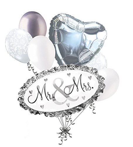 Studio : Anagram Publisher : Anagram Binding : Toy Product Description Included in this bouquet: 7 Balloons Total 1 - 32" "Mr. Mrs." Marquee Oval Balloon 1 - 18" Silver Heart Balloon 5 - 12" Mixed Latex Balloons (2 Pearl White, 2 White Damask on Clear, 1 Silver) These items may arrive flat or in retail packaging All balloons sold online are shipped out with no air/helium. Filled balloons don't travel well through different elevations. All balloons are sold without ribbons. 0