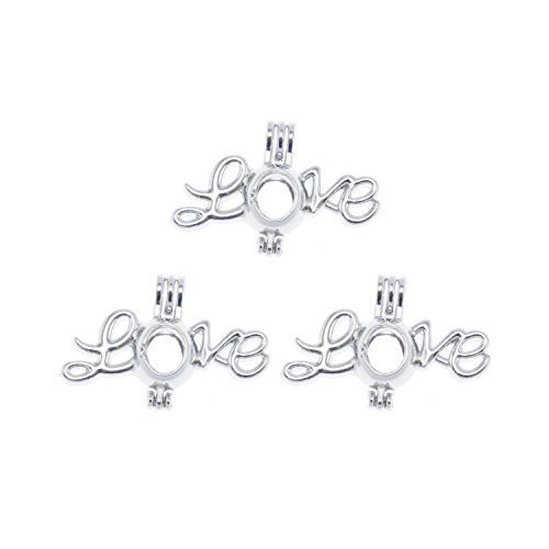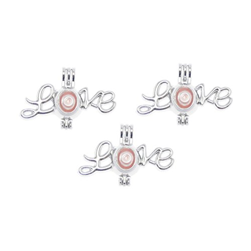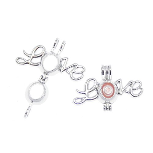 Julie Wang 10pcs Wholesale Bulk Silver Essential Oil Diffuser Lockets Aromatherapy with Lava Stone Beads Cages Pendant Charms Letter Love