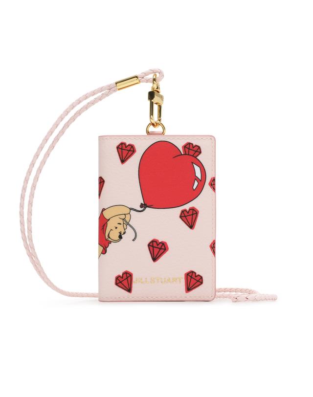 질스튜어트 고유의 귀여운 쁘띠 다이아몬드 패턴과 디즈니 푸우 캐릭터로 포인트를 준 귀여운 디자인의 목걸이형 카드지갑입니다.