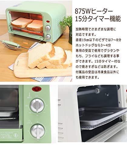 温度調節ツマミ、15分タイマー機能付き。 受け皿と焼き網が付いているので焼きたいものによって使い分けできます。