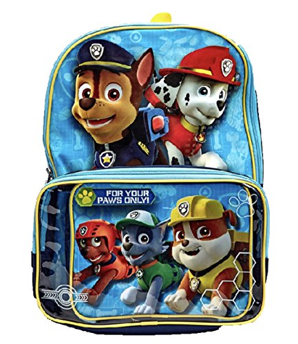 -. Feature : Includes Paw Patrol full size backpack and insulated lunch bag / Store and carry lunch bag in clear front pocket / Adjustable padded straps and mesh side pockets for water bottle / Chase, Marshall and Rubble cartoon puppy design / For back to school, travel, beach or camp
