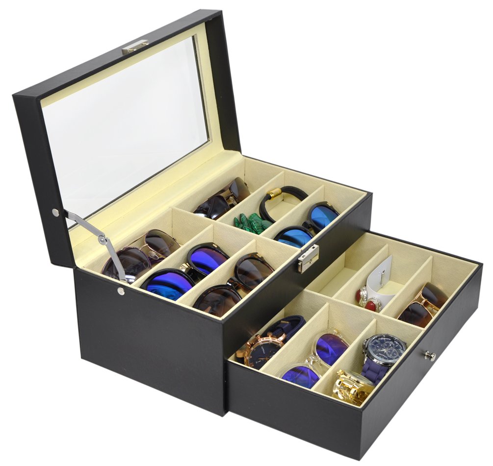 It is a collection case that can store 12 sunglasses in two stages.