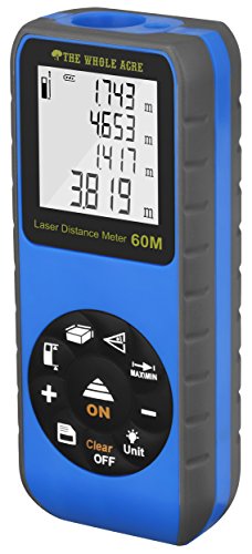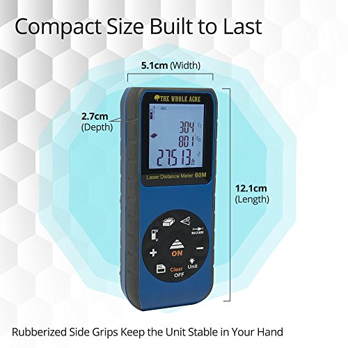 The Whole Acre Laser Measure Kit - Digital Long Distance Compact Measurement Device with 60 Meter Range - Small Portable Indoor and Outdoor Electronic Tool for Measuring Length Height Area and Volume
