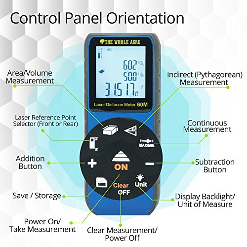 - The Whole Acre Laser Distance Measure with Carry Case: Our professionally engineered handheld digital laser measurement tool is a quality built instrument manufactured to withstand the toughest working environments and includes a compact protective carry bag to safely store the device