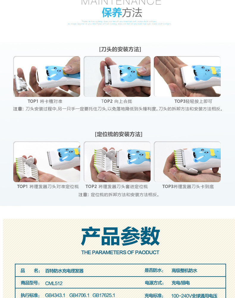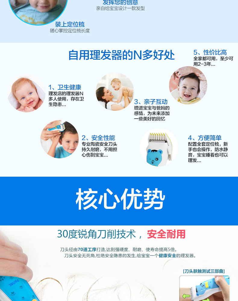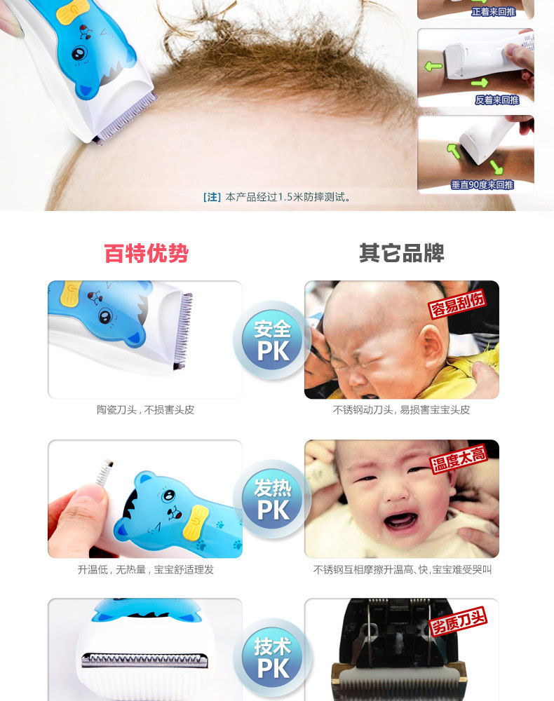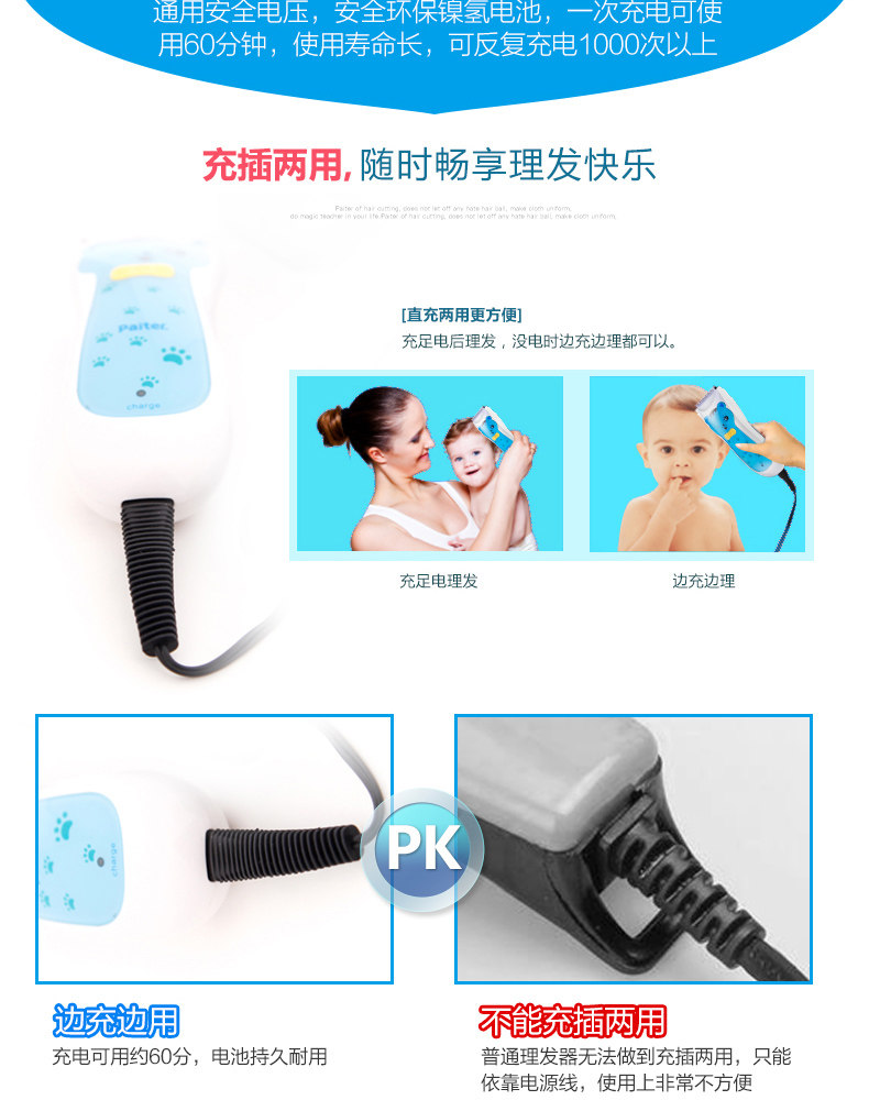 婴儿理发器宝宝超静音充电式陶瓷剃头刀家用儿童防水电推子
